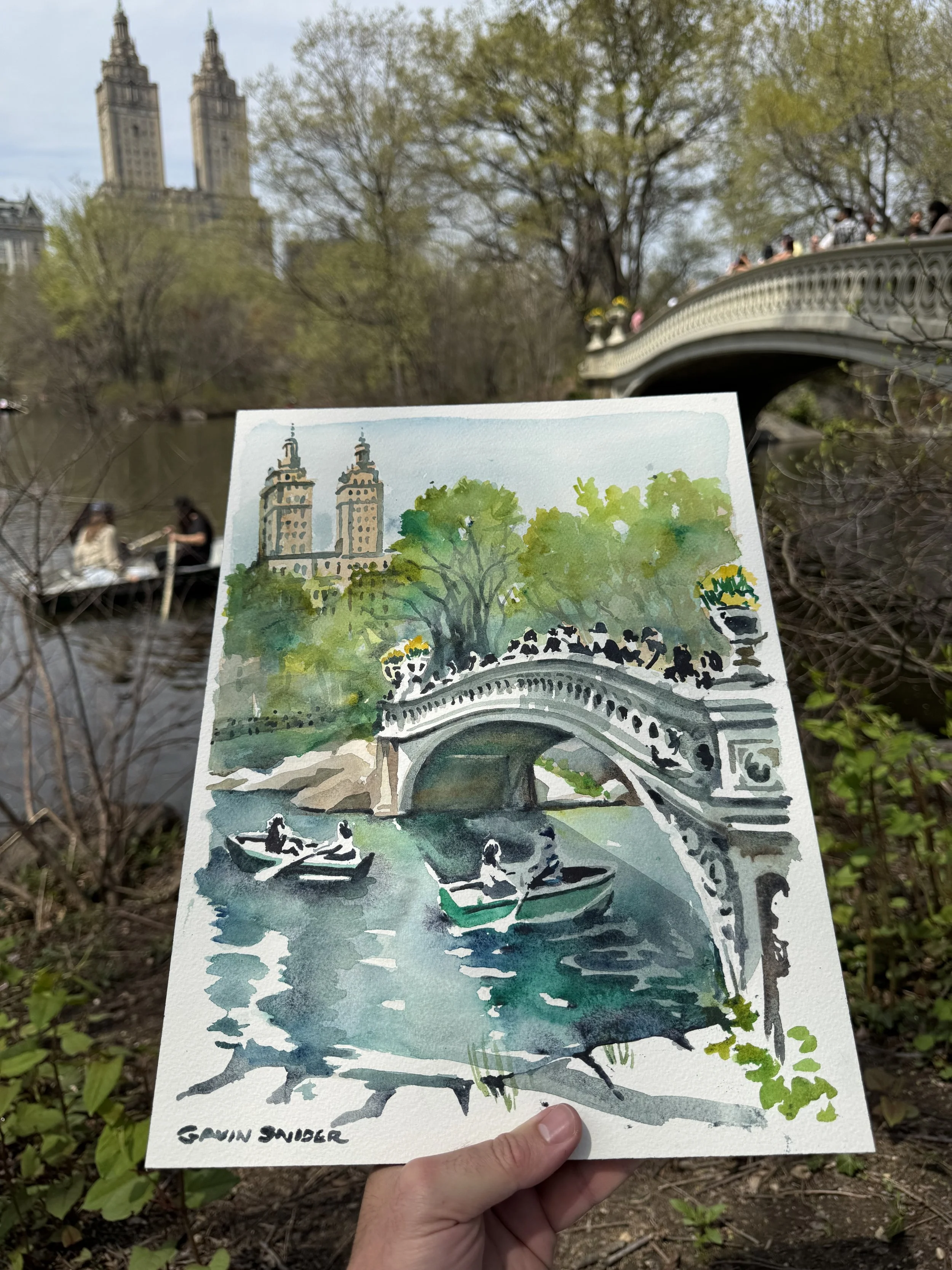 I walked through Central Park on a warm Saturday morning, past the bubble man and the string quartet and the guy selling hats on the blanket and the girl in her quinceañera dress, hopped a fence, and sat down on a root to paint.